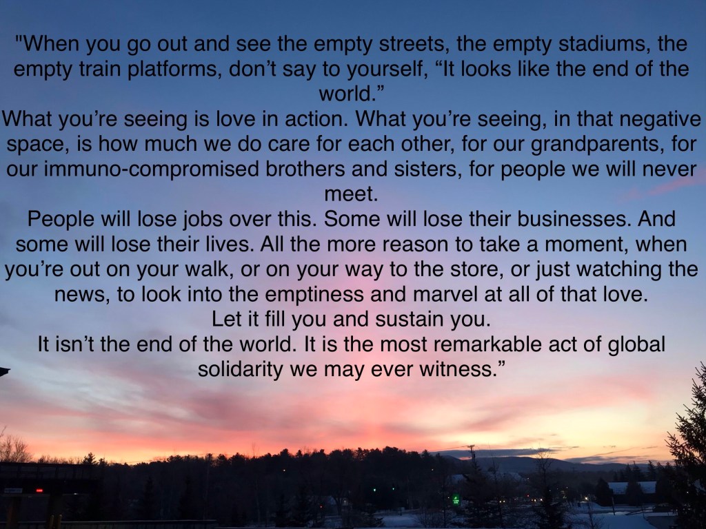 So as this virus is pretty much the only news right now, colleges are shutting down, the NCAA is banning fans from events, meetings conferences are being cancelled…I’m struggling to avoid a depressive episode.